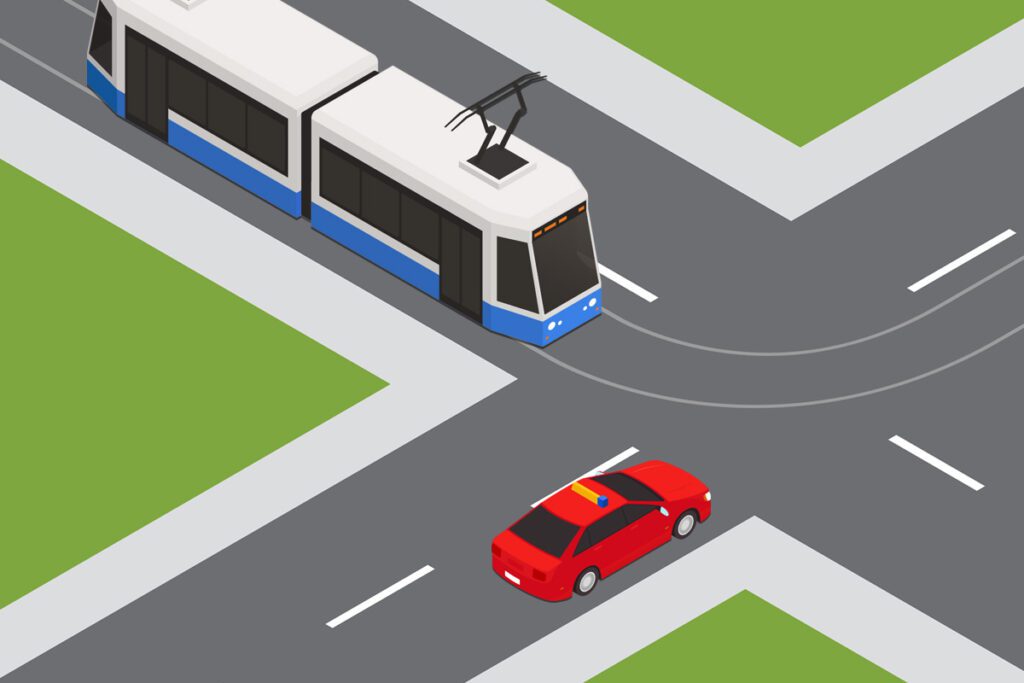 Dit is een gelijkwaardig kruispunt, op gelijkwaardige kruisingen krijgt een tram altijd voorrang.