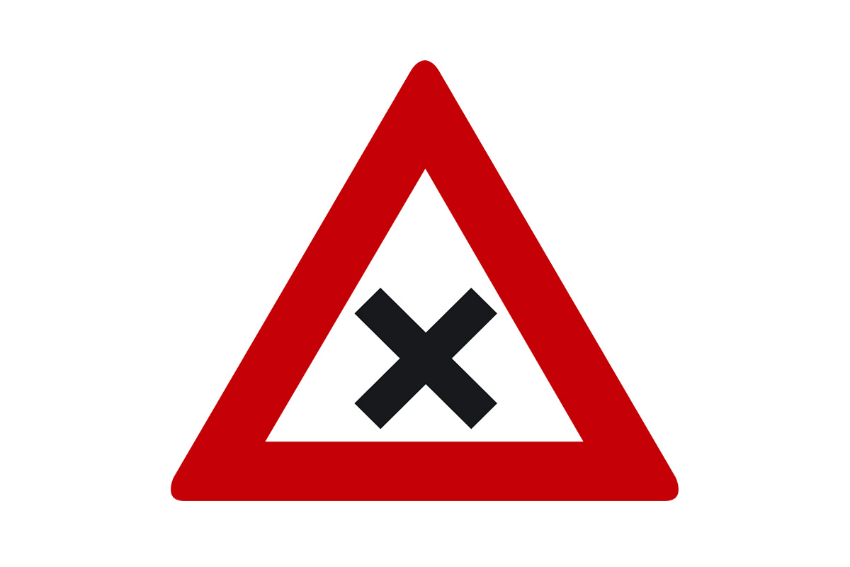 Dit type bord is een gevarendriehoek. Het kruis in het midden duidt een kruispunt aan. Oftewel: een gevaarlijk kruispunt.